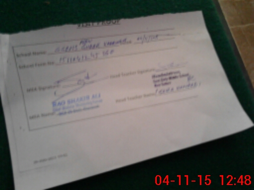| Attendance Register | Head Teacher | MEA with School | Visit Proof |