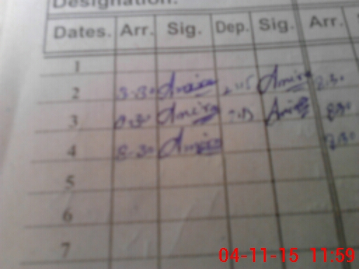 | Monitoring Date: 04-11-2015 | Start Time: 04-11-2015 11:40 AM | End Time: 04-11-2015 12:03 PM | Name of MEA: Z.**** M.Is**** | |