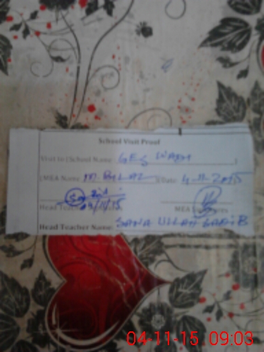 | Attendance Register | Head Teacher | MEA with School | Visit Proof |
