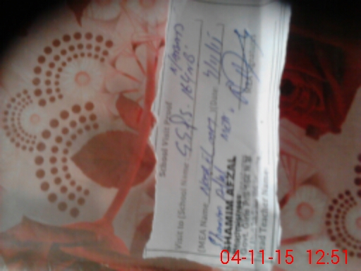 | School Visited by School Health & Nutrition Supervisor (No. of Visits) | 1 | Name1: | Khawar Hayat | Name2: | |