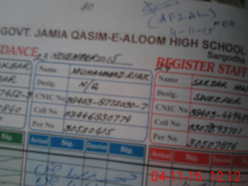 | Name: IF**** AH**** Designation: (School Headmaster's/Headmistress's) HEADMASTER Phone/Cell Number: 03**** |