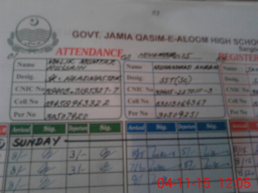 | EMIS Code: 38420029 | Name of School: GHS JAMIA QASIM UL ULOOM JINNAH COLONY | |||