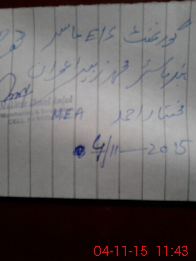 | Monitoring Date: 04-11-2015 | Start Time: 04-11-2015 10:42 AM | End Time: 04-11-2015 11:47 AM | Name of MEA: EH**** ULHA**** (R**** | |