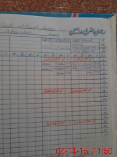 | CNIC | Full Name | Designation | R/C | Absence During Last Calender Month |