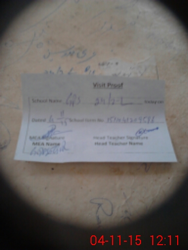 | Attendance Register | Head Teacher | MEA with School | Visit Proof |