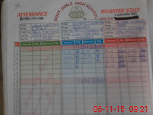 | Name: Sh**** Ba**** Ma**** Designation: (School Headmaster's/Headmistress's) Head Mistress Phone/Cell Number: 03**** |