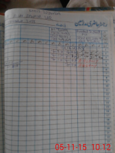 | CNIC | Full Name | Designation | R/C | Absence During Last Calender Month |