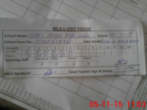 | Attendance Register | Head Teacher | MEA with School | Visit Proof |