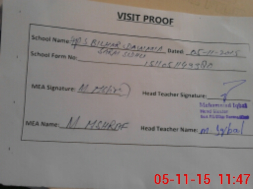 | Attendance Register | Head Teacher | MEA with School | Visit Proof |