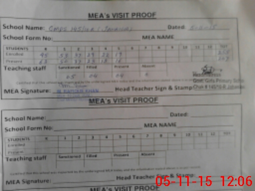 | Attendance Register | Head Teacher | MEA with School | Visit Proof |