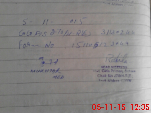 | Name: AB**** Na**** Designation: (School Headmaster's/Headmistress's) PST Phone/Cell Number: 03**** |