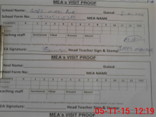 | Attendance Register | Head Teacher | MEA with School | Visit Proof |