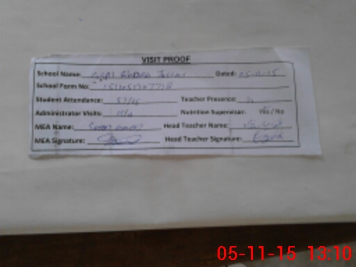 | Attendance Register | Head Teacher | MEA with School | Visit Proof |