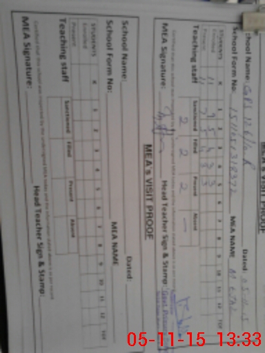 | Attendance Register | Head Teacher | MEA with School | Visit Proof |
