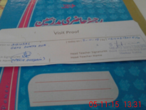 | Attendance Register | Head Teacher | MEA with School | Visit Proof |