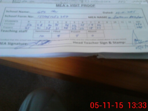 | Attendance Register | Head Teacher | MEA with School | Visit Proof |