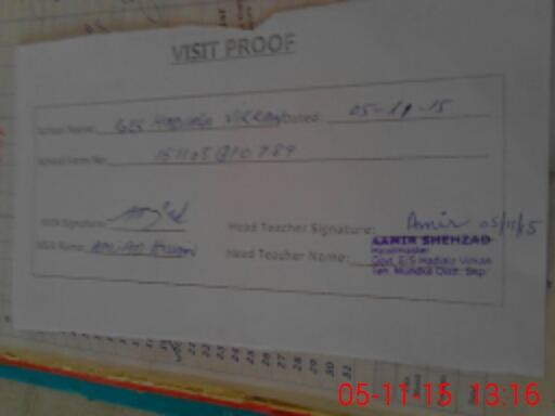 | Attendance Register | Head Teacher | MEA with School | Visit Proof |