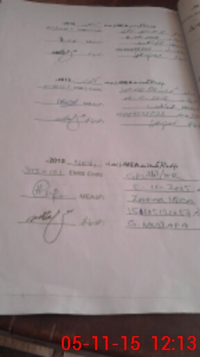 | Monitoring Date: 05-11-2015 | Start Time: 05-11-2015 11:34 AM | End Time: 05-11-2015 12:15 PM | Name of MEA: Za**** Iq**** BN**** | |