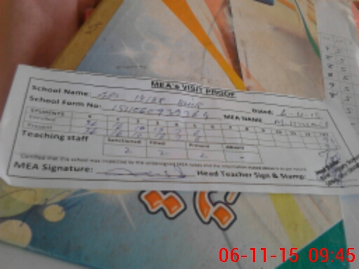 | Attendance Register | Head Teacher | MEA with School | Visit Proof |