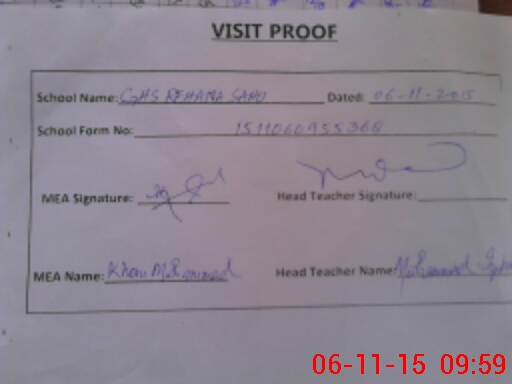 | EMIS Code: 36410005 | Name of School: GHS REHANA SAHU, KABIRWALA | |||