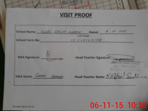 | Attendance Register | Head Teacher | MEA with School | Visit Proof |