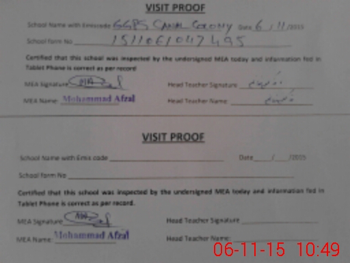 | Attendance Register | Head Teacher | MEA with School | Visit Proof |