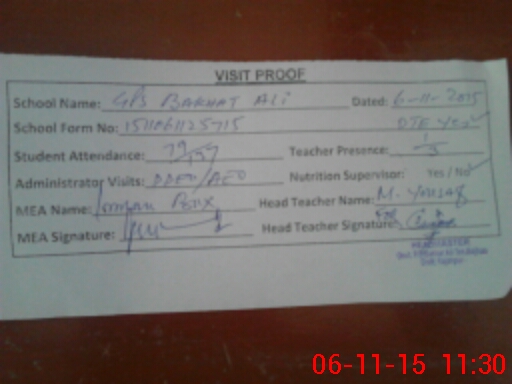 | EMIS Code: 32430031 | Name of School: GPS BAKHAT ALI | |||