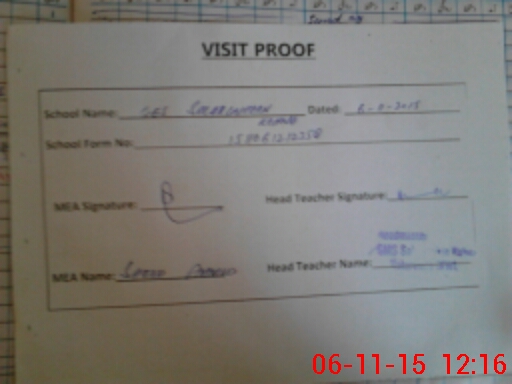| Attendance Register | Head Teacher | MEA with School | Visit Proof |