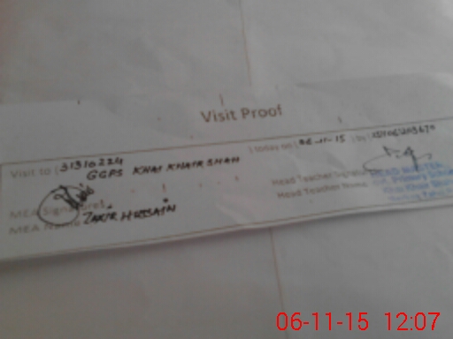 | School Visited by School Health & Nutrition Supervisor (No. of Visits) | 1 | Name1: | Mohammad Javed Iqbal | Name2: | Nil |