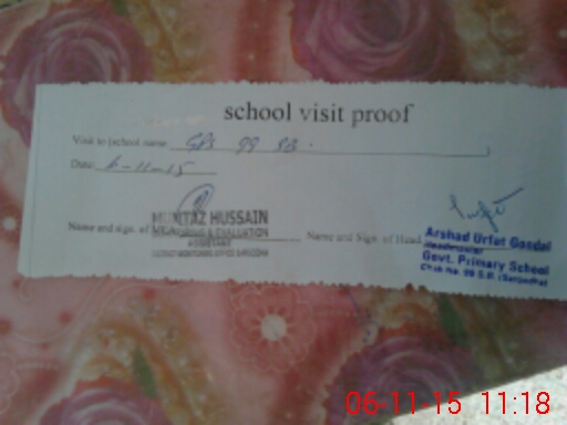 | School Visited by School Health & Nutrition Supervisor (No. of Visits) | 1 | Name1: | NOSHEEN AKHTAR | Name2: | |