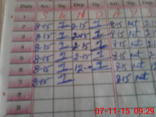 | Monitoring Date: 07-11-2015 | Start Time: 07-11-2015 09:06 AM | End Time: 07-11-2015 09:32 AM | Name of MEA: Z.**** M.Is**** | |