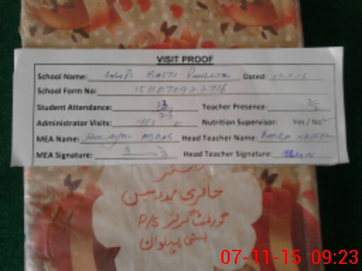 | Attendance Register | Head Teacher | MEA with School | Visit Proof |