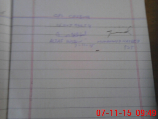 | Monitoring Date: 07-11-2015 | Start Time: 07-11-2015 08:39 AM | End Time: 07-11-2015 09:49 AM | Name of MEA: Al**** Hu**** BN**** | |