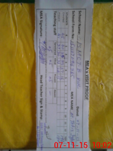 | Monitoring Date: 07-11-2015 | Start Time: 07-11-2015 09:16 AM | End Time: 07-11-2015 10:20 AM | Name of MEA: M.Ta**** Iq**** (S**** | |