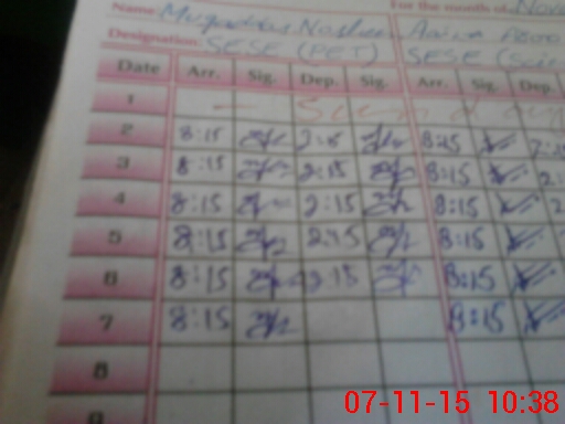 | Monitoring Date: 07-11-2015 | Start Time: 07-11-2015 10:06 AM | End Time: 07-11-2015 10:42 AM | Name of MEA: Z.**** M.Is**** | |