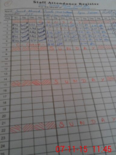 | CNIC | Full Name | Designation | R/C | Absence During Last Calender Month |