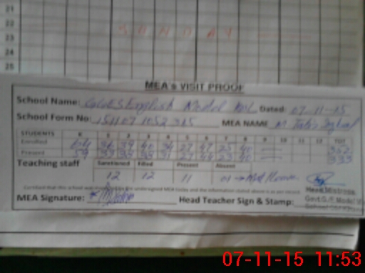 | Attendance Register | Head Teacher | MEA with School | Visit Proof |