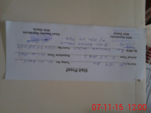 | Monitoring Date: 07-11-2015 | Start Time: 07-11-2015 11:25 AM | End Time: 07-11-2015 12:01 PM | Name of MEA: Kh**** Ha**** (R**** | |
