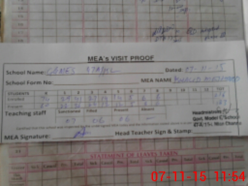 | Attendance Register | Head Teacher | MEA with School | Visit Proof |