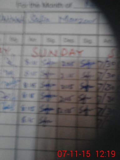 | Monitoring Date: 07-11-2015 | Start Time: 07-11-2015 12:06 PM | End Time: 07-11-2015 12:24 PM | Name of MEA: MU**** YO**** (R**** | |