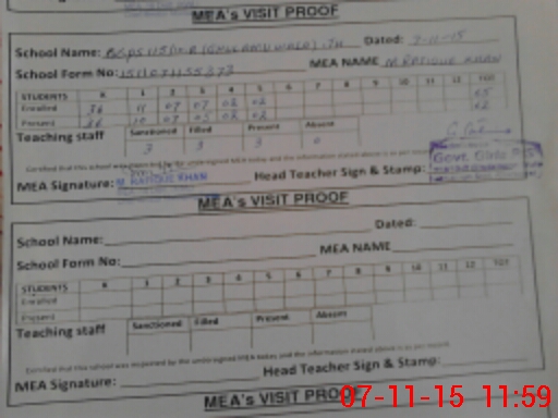 | Attendance Register | Head Teacher | MEA with School | Visit Proof |