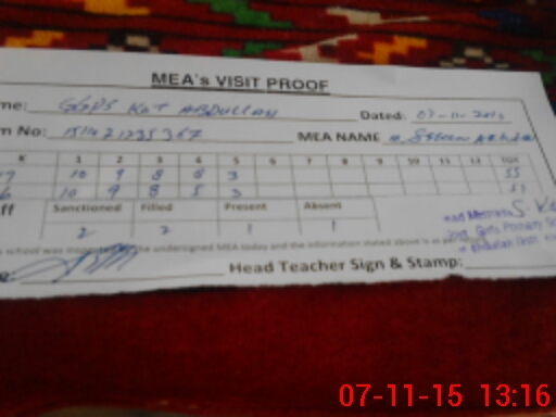 | Attendance Register | Head Teacher | MEA with School | Visit Proof |