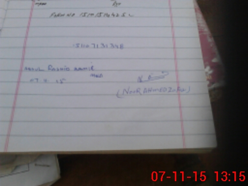 | Monitoring Date: 07-11-2015 | Start Time: 07-11-2015 01:03 PM | End Time: 07-11-2015 01:26 PM | Name of MEA: Ab**** Ra**** Am**** BN**** 28 | |