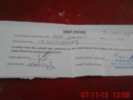 | Attendance Register | Head Teacher | MEA with School | Visit Proof |