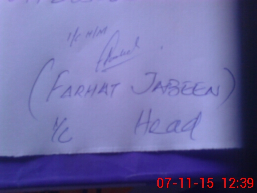 | Name: Fa**** Ja**** Designation: (School Headmaster's/Headmistress's) Ic/hm Phone/Cell Number: 03**** |