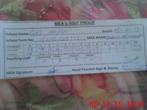 | EMIS Code: 36430211 | Name of School: GHS 120/15-L, MIAN CHANNU | |||