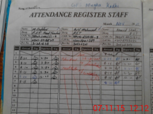 | Remarks (Use Separate Page if Required): School fail to provide the bank statement of FTF therefore record can not be completed and PST teacher Arif Mehmood put medical leave wef 26 Oct 2015 as per Dairy No 24 Oct 2015 but sanctioned leave record not available in the school at the time of visit | |||||