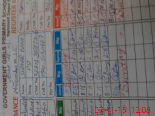 | CNIC | Full Name | Designation | R/C | Absence During Last Calender Month |