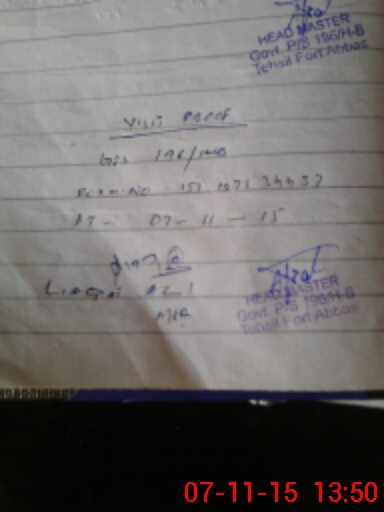 | Name: MU**** AR**** Designation: (School Headmaster's/Headmistress's) PTC Phone/Cell Number: 03**** |