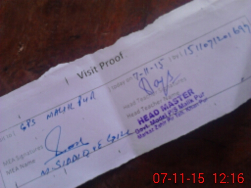 | Attendance Register | Head Teacher | MEA with School | Visit Proof |